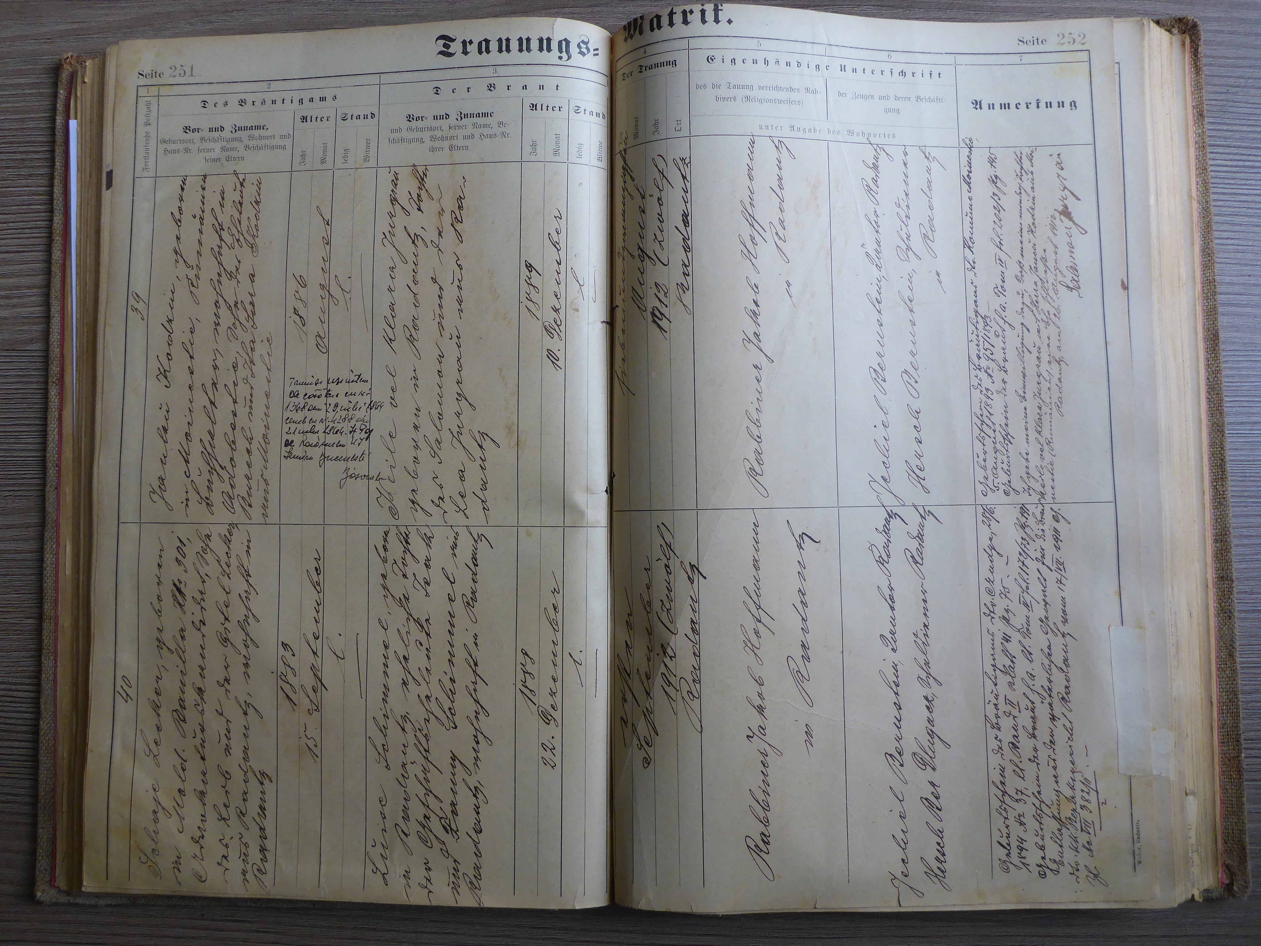 Try again! He's in there or he didn't get married (and registered) during the indicated time period. Try searching by Given Name only. Try searching on only a few letters at the beginning of his surname, or try a few letters at the end of his surname. Think about alternate spellings and use those in your search. Restrict your search to the most likely range of years. If the name included an accented character, your search should include that character as well, or use other letter sequences not containing the character. Searching for "Schachter" will not locate "Schächter" in the database. But searching for "chter" will locate both "Schachter" and "Schächter".